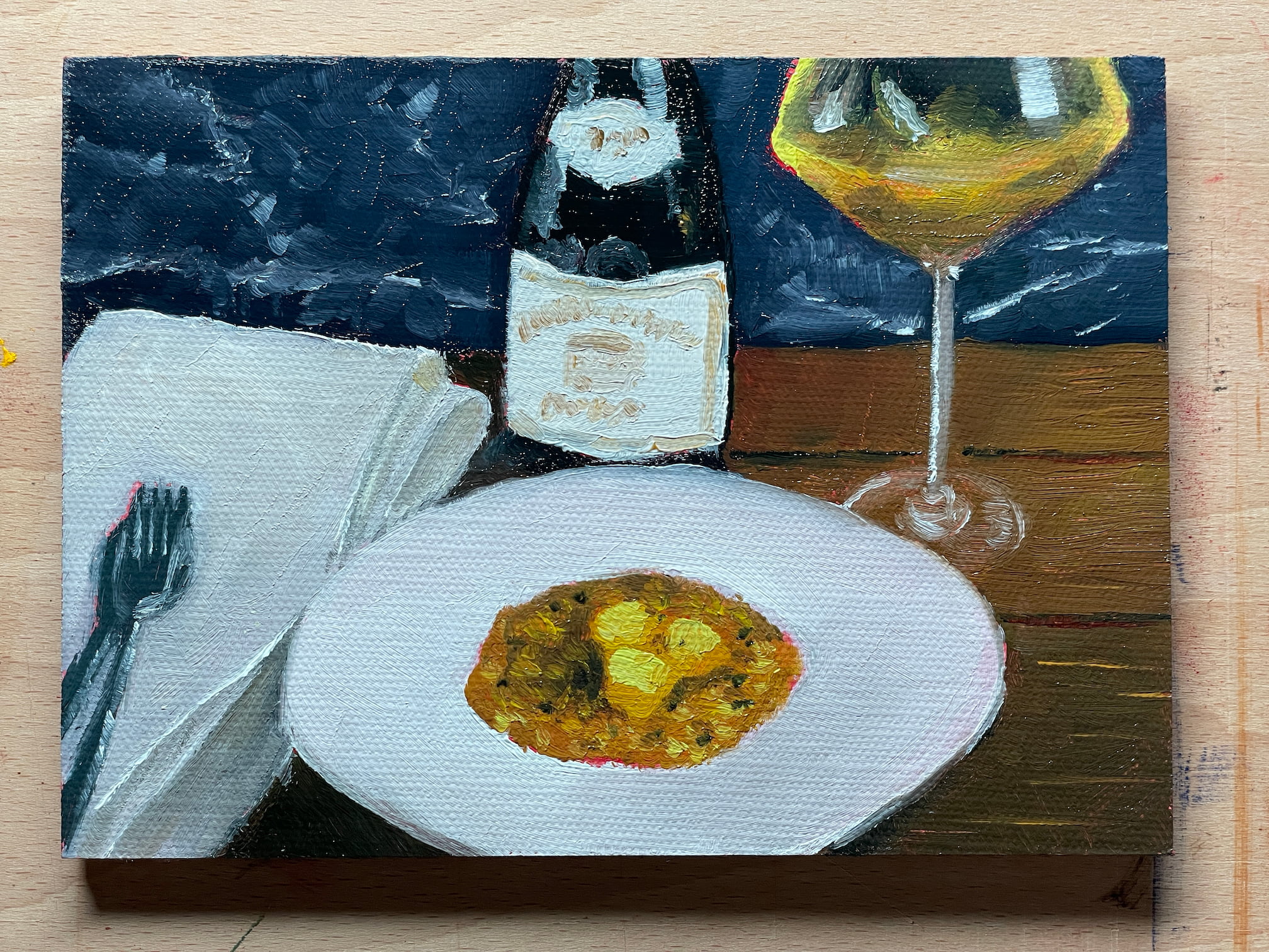 На прошлый Новый год я получил от Ани подарок, о котором давно мечтал — масляные краски и кисти. Еще в детстве мне хотелось стать художником, но получилось начать воплощать эту мечту только после тридцати лет.